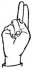 На ћирилици написано БУДИМИР ШКРЕБИЋ састоји се из 14 слова [?]. Исписано ћириличном једноручном азбуком за глувонеме: